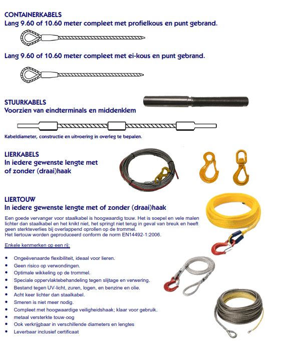 Hoogwaardig touw is een uitstekend alternatief voor staalkabel. Het is flexibeler, aanzienlijk lichter en heeft geen last van knikken. Bovendien veert het niet terug bij breuk en behoudt het zijn sterkte wanneer het overlappend op een trommel wordt opgerold. Ons liertouw wordt geproduceerd volgens de norm EN14492-1:2006.