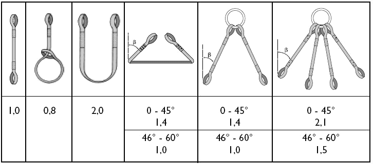 Gebruiksfactor voor symmetrische belasting van hijsbanden en rondstroppen: