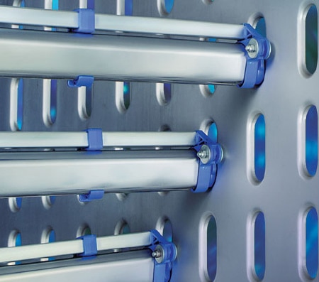 Stangen kunnen voorzien worden van plug passend in vergrendelstrip met 19 mm gaten.